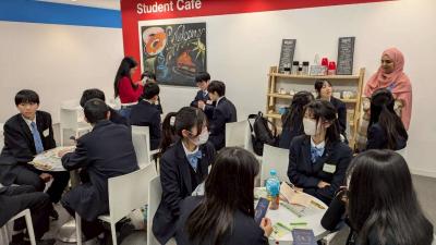 学校で培った英語スキルをもとに、ネイティブのゲストティーチャーと一緒に英会話に励みました。普段と違う環境での学習でしたが、生徒たちは自分の力を発揮しようと頑張ってました。