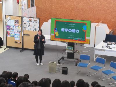 第5回クリエーティブスクールを実施しました。今回は、実際にオーストラリア留学とセブ島留学を経験した先輩からお話を聞くことができました。留学のきっかけや現地の景色、人との出会い、言葉、異文化など知らなかった世界を紹介してくれました。とても興味深く話を聞いていました。